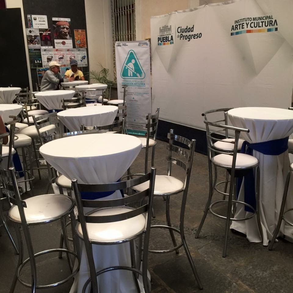 periquera lounge con 4 bancos con mantel y banda